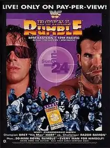 The Royal Rumble is an annual gimmick pay-per-view (PPV). It has been produced every January by the World Wrestling Federation (WWF, now WWE) since 1988, and has been broadcast on PPV since 1989.[2] It is one of the promotion's original four pay-per-views, along with WrestleMania, SummerSlam, and Survivor Series, later dubbed the "Big Four".[3] It is named after the Royal Rumble match, a modified battle royal in which the participants enter at timed intervals instead of all beginning in the ring at the same time. The 1993 event was the sixth event in the Royal Rumble chronology and was scheduled to be held on January 24, 1993, at the ARCO Arena in Sacramento, California.[4][5]