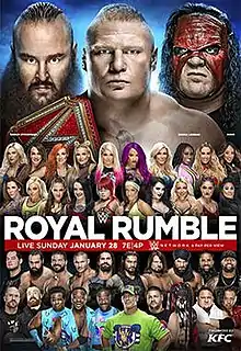 The Royal Rumble is an annual gimmick event produced every January by WWE since 1988. It is one of the promotion's original four pay-per-views (PPV), along with WrestleMania, SummerSlam, and Survivor Series, dubbed the "Big Four".[2] It is named after the Royal Rumble match, a modified battle royal in which the participants enter at timed intervals instead of all beginning in the ring at the same time. Announced on January 26, 2017, the 2018 event was the 31st Royal Rumble and was scheduled to be held on January 28, 2018, at the Wells Fargo Center in Philadelphia, Pennsylvania, and was the third Royal Rumble held at this venue after the 2004 and 2015 events. It featured wrestlers from the Raw and SmackDown brand divisions with some NXT wrestlers and WWE veterans appearing in the Royal Rumble matches. The event aired on pay-per-view worldwide and was available to livestream on the WWE Network. Tickets went on sale July 29.[3][4]