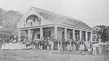 It was run by Amos Starr Cooke and Juliette Montague Cooke from the American Board of Commissioners for Foreign Missions.[5] It was a long, two-story frame building with a large dining room and separate sleeping quarters for the children and for the Cooke family. There was also the New England parlor, furnished with handmade and treasured furniture sent from home, and with much brought from China. It resembled nothing Hawaiian in its appearance nor its atmosphere. The royal children were taught how to act like Americans and to speak like Americans. The Hawaiian kahu (traditional caretaker of children) John Papa ʻĪʻī was selected as assistant teacher.[2]: 291