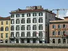 The Royal Victoria Hotel is located in the oldest part of the medieval settlement of Pisa on the northern bank of the River Arno. The earliest part of the building is a tower erected by the Winemaker's Guild in the 11th century, which served both as an inn and as their headquarters.