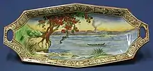 In 1979 the company was acquired by Staffordshire Potteries Ltd, which was bought by Coloroll in 1986.[3] In 1995 the company was bought out by the management; its name reverted to Grimwades Ltd, and traded as Royal Winton. Interest in chintzware had grown, with the publication of reference books and antiques auctions dedicated to it. It was realised that there was a demand for Royal Winton chintz products, so some of the popular designs were reintroduced, reviving old lithographing techniques. The backstamp included the year 1995, to avoid confusion with earlier pieces. In 1997 the first new piece of chintzware since the 1960s was introduced.[1]