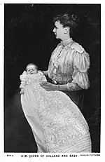 ![]() Princess Juliana wears the doopjurk in 1909. She is held by her mother, Queen Wilhelmina of the Netherlands. | |