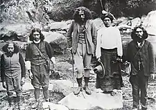 On 2 April 1916 a 70-strong, and heavily armed, police party led by Police Commissioner John Cullen arrived at Maungapōhatu to arrest him for sedition. Because Rua's village was so remote, the police had to take a lot of equipment and camped on the way. They moved like a small army with wagons and pack-horses, and included New Zealand Herald photographer Arthur Breckon.[14] So as not to alert the Maungapōhatu village of their intention to spring an attack they did not wear their police uniforms till just before the raid. They were convinced that when they reached Maungapōhatu there would be an ambush.