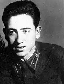 Rubén Ruiz Ibárruri (Russian: Рубе́н Руи́с Иба́ррури; January 9, 1920 – September 3, 1942) was a Spanish military officer and Soviet commander of the 100th Machine Gun Company of an independent training battalion of the 35th guards rifle division of the 62nd army of the Stalingrad Front. He was posthumously awarded the rank of captain of the Guards unit, and also 2 times the Order of the Red Banner (July 22, 1941, and October 22, 1942). By the decree of the Supreme Soviet of the USSR, he was posthumously awarded the title of Hero of the Soviet Union (August 23, 1956). He was posthumously awarded the Order of Lenin (August 23, 1956). He was a Lieutenant of the International Brigade during the Spanish Civil War. The asteroid 2423 Ibarruri (discovered by Soviet astronomer Lyudmila Zhuravleva) was named in his honour at 1972. He died in the Battle of Stalingrad.