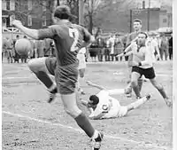 Mendoza won the league title in 1951 with Zenthoefer before moving to Raiders for the 1952 season. That year the Raiders won both the league title and National Amateur Cup. After Raiders won the Amateur Cup, Tom Kutis, owner of the Kutis Funeral Home, began sponsoring the team. The team, now known as St. Louis Kutis, went on to win the 1953, 1954, 1957 and 1960 league titles. St. Louis Kutis went on to win the National Amateur Cup every year from 1956 to 1960.[2] In 1954, SL Kutis was runner-up in the National Challenge Cup before taking the title in 1957. In the 1950s, the U.S. Soccer Federation (USSF) frequently had difficulty fielding the U.S. national team and in 1957, USSF selected SL Kutis to represent the U.S. in the qualifying rounds for the 1958 FIFA World Cup. Despite its domestic success, the SL Kutis team was unable to take the U.S. to the cup finals. His teammates with SL Kutis included such U.S. greats as Bill Looby, Harry Keough and Frank Borghi.[3]