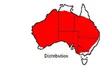 It occurs throughout Australia, and has also naturalised in New Caledonia. It tolerates a range of soils, but prefers soils that are slightly saline.[2][3] Occurring through most of semi-arid Australia, on a variety of land and soil types such as sand plains, hill slopes, creek lines, sand dunes and salt lake shores.[1] Preferring slightly shaded soil areas under trees such as Alectryon oleifolius and Acacia papyrocarpa.[8]