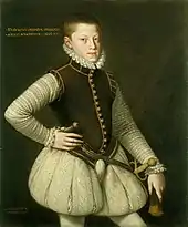 Rudolf spent eight formative years, from age 11 to 19 (1563–1571), in Spain, at the court of his maternal uncle Philip II, together with his younger brother Ernest, future governor of the Low Countries.[3]