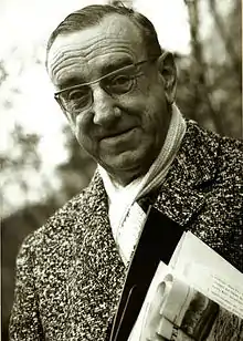 In Binningen, where he had lived since 1947 with his wife Elsa “Elsy” Mäglin (* 1904; † 2006) and their two children Marie-Louise “Marly” (* 1938) and Urs Beat (* 1941), you could almost find him found daily with a bundle of newspapers and one of his writing cases under his arm. He liked to retire to a corner of the “Rebstock” or “Jägerstübli” to write, but was occasionally also available for a sociable conversation over a cup of coffee or a glass of wine. Another well-known characteristic of Bolo, wearing white gloves, could be explained by his colophony allergy (an allergy to printer's ink). A portrait of fellow writer Heinrich Kuhn (editor of the National-Zeitung 1934–74) in the foreword to the second edition of the Ruesser also described Bolo's typical appearance as follows: «A narrow face with a sharp, slightly curved nose on top of one rather thin body. Always neatly dressed, with a butterfly tie, gloves and cane, sometimes accompanied by a little fox terrier, a pencil case or envelope in his hand, that's how he appeared at the editorial office with a lively pace."