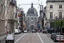 ![]() A view along the Rue Royale/Koningsstraat in Saint-Josse-ten-Noode facing Saint Mary's Royal Church in neighbouring Schaerbeek | |