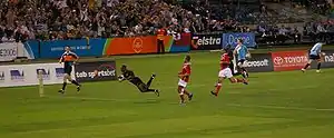 ![]() The Kenya national sevens team in action during a lineout in the 2008 Edinburgh Sevens | |