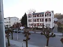 The first bathing facility on Rügen opened in 1794 at the mineral-rich spring in Sagard.[10] In 1818, the Putbus village of Lauterbach became Rügen's first seaside resort.[11] In the 1860s Sassnitz became a seaside resort, followed by Binz in the 1880s.[11] During World War II Prora was constructed as a mass tourist resort but it was never finished.[11]