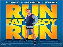 Run Fatboy Run is a 2007 comedy film directed by David Schwimmer, written by Michael Ian Black and Simon Pegg, and starring Pegg, Dylan Moran, Thandiwe Newton, Harish Patel, India de Beaufort and Hank Azaria. It was released in the United Kingdom on 7 September 2007, in Canada on 10 September 2007 and in the United States on 28 March 2008.