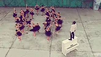 During his set at the Coachella Valley Music and Arts Festival on April 17, 2011, West performed "Runaway" during the end of the performance.[54] West's performance was described as "one of the most memorable performances in Coachella history."[55] Todd Martens, critic for Los Angeles Times, described that the performance consisted of a "group of wayward ballerinas, seemingly caught in some sort of magnetic push and pull from the artist."[56] During the 'Coke Live Musical Festival' in Poland, West performed the song with a 20 minute long freestyle.[57] West performed the song the way he normally did, ending the performance with a continuous freestyle lasting 20 minutes in duration.[58][59] One lone ballerina performed an interpretive dance during the entire duration of the freestyle.[60] The song was often performed at the Watch the Throne Tour.[61]