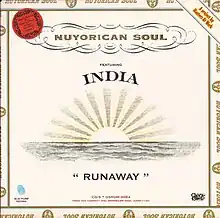 "Runaway" is a song by Nuyorican Soul, a project by the house-garage production and remix team of "Little" Louie Vega and Kenny "Dope" Gonzalez. It features Puerto Rican singer and songwriter India and was released in 1996 as the first and lead single from their debut album, Nuyorican Soul (1997). The song is a cover of The Salsoul Orchestra's recording "Run Away", featuring American singer Loleatta Holloway from 1977. The new version was very successful in clubs and reached number-one on the Billboard Hot Dance Club Play chart in the US. In Europe, it peaked at number 24 on the UK Singles Chart, but was even more successful on the UK Dance Chart, where it hit number-one. Additionally, it was a top 30 hit in Iceland, and a top 40 hit in Germany. On the Eurochart Hot 100, the song reached number 75 in February 1997.