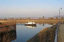 Runcorn Docks is owned by the Manchester Ship Canal Company which is part of the Peel Ports Group.[44] It comprises Francis Dock (formerly the Tidal Basin, now berths No. 1–2), Alfred Dock (berths No. 3–5), and Fenton Dock (berths No. 6–9).[45] It can take ships with cargoes up to 5000 tonnes with a maximum length of 350 feet (107m) and maximum draught of 7 metres.[46] The adjacent canal lay-by has a deepwater berth of 168m. It has pipelines handling chemical and other liquid cargoes connecting to adjacent storage facilities and to the Ineos Chlor network.[47]