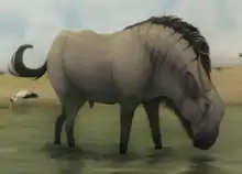 Rusingoryx is a genus of extinct alcelaphine bovid artiodactyl closely related to the wildebeest. It contains only one species, R. atopocranion, that lived on the plains of Kenya during the Pleistocene.[1] It was originally named as a species of Megalotragus.