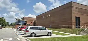Russell County High School (RCHS) is a rural Title I public high school located in Seale, Alabama offering grades 9 through 12. The school enrolls 1,004 students in total (as of the 2021–2022 school year)[1][2] and is the only high school in the Russell County School District. The school claims that it is a diverse institution. The student body consists of 43% caucasian, 47% African American, and 10% other ethnicities.[2] RCHS proceeds Russell County Middle School, also the only middle school in the school district. There are five elementary schools surrounding RCHS; those schools are Dixie Elementary, Ladonia Elementary, Mount Olive Intermediate, Mount Olive Primary, and Oliver Elementary.[3][4][5]