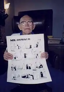Russell Johnson (December 10, 1893 – September 7, 1995) was an American cartoonist, best known as the creator and artist of Mister Oswald, a monthly comic strip that ran for more than six decades in the national trade journal now called Hardware Retailing. The strip documents a large portion of the history of American business life, as seen through the eyes of the main character, Oscar S. Oswald, a prominent citizen of the fictional Dippy Center, USA. Although the strip was known primarily to hardware retailers, a book, Forty Years With Mister Oswald, was published in 1968, collecting the comic strips.