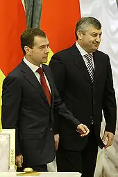 On 25 September 2008, President Medvedev signed an ukaz appointing the first Russian Ambassador to South Ossetia, Elbrus Kargiyev,[16] who presented his Letters of Credence to South Ossetian President Eduard Kokoity on 16 December 2008. Dmitry Medoyev, the Plenipotentiary Representative of the President of Republic of South Ossetia to Russia was appointed by Eduard Kokoity as South Ossetia's first ambassador to Russia on 13 January 2009.[17] Medoyev presented his credentials to Russian President Dmitry Medvedev on 16 January 2009.[18]