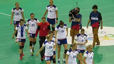 Russia qualified to the Olympics for the third time, through the qualification tournament taking place from 18 to 20 March 2016 in Astrakhan. In the group stage of the Olympic tournament, Russia defeated all of its rivals. In the knockout stage, the Russians defeated Angola in the quarterfinal, and in the marathon semi-final match between Norway claimed the deciding point in overtime. In the final, Russia defeated France to claim its first Olympic gold in women's handball.[14][15]