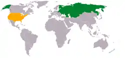 The relations between the Russian Empire and the United States (1776–1917) predate the Soviet Russia/Soviet Union–United States relations (1917–1991) and the modern Russia–United States relations (1991–present). Russia officially recognized the United States in 1803, and the two countries established diplomatic relations in 1809.[1] From 1776 to 1917 the US and Russia maintained cordial relations, with occasional cultural and commercial exchanges. Russia was neutral during the American Civil War, but tended to favor the North. It sold Alaska on favorable terms in 1867. However, there were also tensions between the two countries, particularly over mistreatment of Jews in Russia in the 1890-1914 era. Trade relations were cordial but were never a major factor for either nation. Large-scale migration from Russia began in the late 19th century. Minorities emigrated to the U.S. especially Jews, Poles, Lithuanians, and Finns, but few ethnic Russians. In the late 19th century, the two countries began to cooperate on issues such as maritime law and trade. This cooperation continued into the early 20th century. The U.S. was reluctant to become an ally of the undemocratic Tsar in World War I. His abdication in early 1917 facilitated American entry into the war. Overall, the relations were characterized by occasional cooperation and limited engagement, with both countries primarily focused on their own domestic and international priorities.