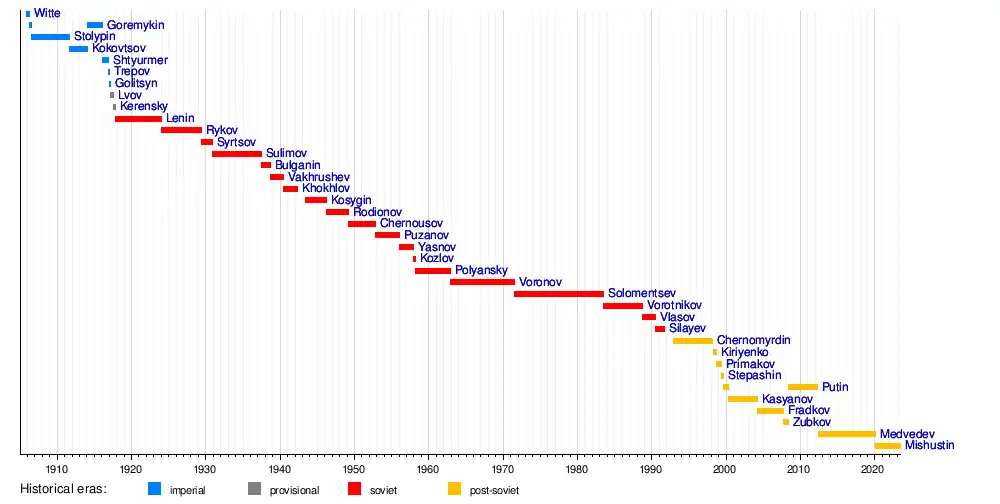 - Dmitry Medvedev: 7–8 May 2018 and 15–16 January 2020