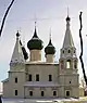 | Combinations of onion domes and tent-roofs | An archaizing four-piered church on an elevated base with five outsize onion domes is surrounded by an enclosed gallery leading to several chapels, porches, and belfries of various shapes and sizes. | Yaroslavl and Upper Volga region, 1640s to 1680s | ![]() | |