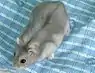 The winter white dwarf hamster (Phodopus sungorus), also known as the Russian dwarf hamster, Djungarian hamster, Dzungarian hamster, striped dwarf hamster, Siberian hamster, or Siberian dwarf hamster, is one of three species of hamster in the genus Phodopus. It is ball-shaped and typically half the size of the Syrian hamster, so is called a dwarf hamster along with all Phodopus species. Features of the winter white hamster include a typically thick, dark grey dorsal stripe and furry feet. As winter approaches and the days shorten, the winter white dwarf hamster's dark fur is almost entirely replaced with white fur. In captivity, this does not usually happen as animals maintained as pets are generally housed indoors and exposed to artificial light that prevents the recognition of short winter daylengths. In the wild, they originate from the wheat fields of Kazakhstan, the meadows of Mongolia and Siberia, and the birch stands of Manchuria.