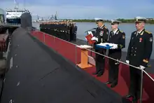 Severodvinsk was handed over to the Russian Navy in late December 2013. The flag-raising ceremony was held on 17 June 2014, marking its introduction into the Russian Navy.[10]