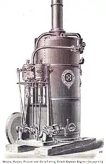 Rustons were primarily steam engineers, manufacturing portable, stationary and traction engines, boilers, and associated engineering products such as winding gear, shafts and pulleys. Threshing machines, clover hullers, corn mills, maize shellers and pumps for steam power were also made. Steam powered winches for sailing trawlers were another product, including boiler, engine, drive shafts and winch bollard.[2] As well as engines for agriculture machines Rustons made railway locomotives, industrial equipment and mining machinery. The company also expanded into electrical and diesel engineering.