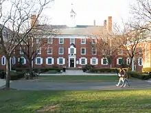 The original purpose of Queen's College was to "educate the youth in language, liberal, the divinity, and useful arts and sciences" and for the training of future ministers for the Dutch Reformed Church.[25][26][27] The college admitted its first students in 1771—a single sophomore and a handful of first-year students taught by a lone instructor—and granted its first degree in 1774, to Matthew Leydt.[25][26] Despite the religious nature of the early college, the first classes were held at a tavern called the Sign of the Red Lion.[28] When the Revolutionary War broke out and taverns were suspected by the British as being hotbeds of rebel activity, the college abandoned the tavern and held classes in private homes.[25][26]