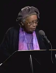 Ruth Edmonds Hill (March 5, 1925 - April 15, 2023) was an American scholar, oral historian, oral storytelling editor, journal editor, educator, historic preservation advocate. Her oral history office is part of the Radcliffe Institute for Advanced Study at Harvard University. She is an iconic figure among oral storytellers, particularly in the United States but also abroad, and has advised storytellers' organizations. Her spouse is Dr. Hugh Morgan Hill who is also known as Brother Blue. Ruth Edmonds Hill is sometimes known as Sister Ruth. Ruth Edmonds Hill is the daughter of Florence Edmonds of western Massachusetts, whose life story is chronicled and has been critically analyzed as part of African-American oral history. Hill has degrees from Simmons College and the University of Massachusetts Amherst.[1]