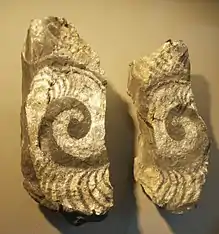 Rutoceratidae is a family of prototypical nautilids, derived probably from either Brevicoceratidae or Acleistoceratidae of the order Oncocerida early in the Devonian. Rutoceratidae comprise a family within the oncocerid superfamily Tainocerataceae[1] They are generally characterized by cyrtoconic and gyroconic shells, commonly with spines, nodes, or frills, although some included genera are almost orthoconic, and a commonly empty, tubular ventral siphuncle.[1][2]