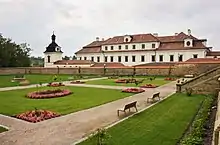 The historic town centre is formed by Staré Square. It comprises preserved burgher houses and Neoclassical former town hall from 1802–1804, which serves today as a tourist information centre. Near the square there is the Church of Saint Gall. It was built in the late 13th century and repaired in pseudo-Gothic style in 1893. The bell tower was built in 1870–1871 in pseudo-Romanesque style.[8]