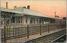 Railroad service through Rye dates back to the 1840s when the New York and New Haven Railroad laid tracks through the town and the city. The NY&NH was merged into the New York, New Haven and Hartford Railroad in 1872. In 1907 the main line was electrified through a major power plant across the state line in Cos Cob built by Westinghouse. Beginning on July 1, 1928, Rye became the northeastern terminus of the New Haven Railroad's affiliate, the New York, Westchester and Boston Railway, on a separate platform from the rest of the station.[4] By December 7, 1929 the line was extended to Port Chester and Rye served as the penultimate stop on the Port Chester Branch.[5] The NYW&B station closed on October 31, 1937, and the New Haven removed the rails in 1940. The New England Thruway was built on the site of the NYW&B station during the 1950s.