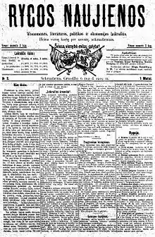 Rygos naujenos (literally: news of Riga) was a Lithuanian-language newspaper printed in Riga, Latvia, from December 29, 1909 to July 11, 1915. Liberal in political orientation, but nationalist (pro-Lithuanian) and anti-communist, the paper was the most widely circulated newspaper amongst Lithuanian citizens residing in Latvia. It was founded and edited by Liudvikas Jakavičius.