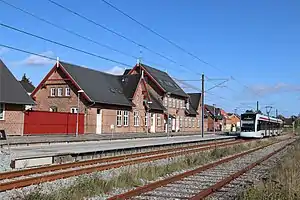 From 2016 to 2019, the station was temporarily closed along with the Grenaa railway line while it was being reconstructed and electrified to form part of the Aarhus light rail system, a tram-train network combining tram lines in the city of Aarhus with operation on railway lines in the surrounding countryside.[2] Since 2019, the station has been served by Line L1 of the Aarhus light rail network, operated by the multinational transportation company Keolis.[5]