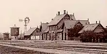 The station building from 1876 was designed by the Danish architect Niels Peder Christian Holsøe (1826–1895), known for the numerous railway stations he designed across Denmark in his capacity of head architect of the Danish State Railways.[3]
