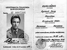 Ryszard Jerzy Kukliński (June 13, 1930 – February 11, 2004) was a Polish colonel and Cold War spy for NATO. He was posthumously promoted to the rank of brigadier general by Polish President Andrzej Duda.[1] Kukliński passed top secret Soviet documents to the CIA between 1972 and 1981, including the Soviet plans for the invasion of Western Europe.[2] The former United States National Security Advisor Zbigniew Brzeziński described him as "the first Polish officer in NATO."[3]