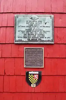 The building, which has been dated to 1665 using dendrochronology, served as one of the earliest inns in the region. It was run for a time by Philip Russell, who was "recorded as a cupbearer to William Penn".[1] After coming to "Port Lewes" in 1721, Ryves Holt, the first Chief Justice of Sussex County, purchased the house. The Lewes Historical Society currently owns and operates the building.[2] On December 30, 2014, the Ryves Holt House was added to the First State National Historical Park.[3]