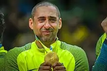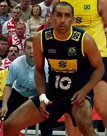 In 2004 he became an Olympic Champion for the first time. However, in the next two Olympics, the Brazilian national volleyball team won silver medals only.[4] Serginho semi-retired from the national team after the 2012 Olympics, and returned only for the 2015 World League.[5] After that he declined to compete at the 2016 Rio Olympics, but was persuaded by Bernardinho to return. Bernardinho claimed that, while Serginho no longer had the agility that made him famous, he had experience and maturity to lead the team during a tournament that would certainly be rife with pressure on the Brazilian team, since they were playing on their country and coming from two losses on previous Olympics. Serginho was essential to motivate his team against France. They were losing, and on a break, Serginho told his colleagues that, while they all had at least one more chance at going to the Olympics, he didn't – those would be his last Olympic Games. Eventually, Brazil won the gold medal against Italy, and Serginho was acclaimed by the cheering fans, who called him king.[6] After the match against Italy, Serginho was named the tournament's most valued player.[7] He announced after the Rio finals against Italy he will play professionally for two more years.