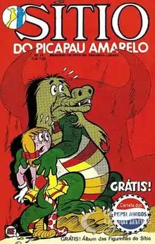 Sítio do Picapau Amarelo was a Brazilian comic book series based on the eponymous novel series Sítio do Picapau Amarelo by Monteiro Lobato. It was originally released in 1977 on the success of the TV series produced by Rede Globo, comic books were published by the publisher RGE who would later become Editora Globo. It continued to be sold until 1979 when the characters Emília, Pedrinho and Visconde now has his own comics replacing the Sítio do Picapau Amarelo, but the comics only lasted two years being sold, and in 1981 the Sítio do Picapau Amarelo returned to be published. The comics being published remained until 1984, two years before the TV series is no longer in production.