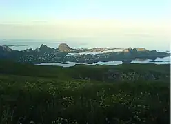 Sørland is a Seaside resort, fishing village and the administrative centre of Værøy Municipality in Nordland county, Norway. It is located on the southern side of the island of Værøya. The village is the main population center of the island, and it is the location of Værøy Church, Værøy Heliport, and Værøy Lighthouse. The village of Nordland lies about 5 kilometres (3.1 mi) to the north and the now-abandoned village of Mostad is located about 5 kilometres (3.1 mi) to the southwest. There are no other villages on the island.