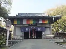 The Sōfuku-ji (崇福寺, literally temple of sublime happiness) in Fukuoka (Japan) is a Buddhist temple of the Rinzai school (Rinzai-shū).[1] It was in 1240 at the headquarters of the Special Administrative Dazaifu by the monk Tan'e (湛慧 founded). In the following year, the monk Enni Ben’en (円爾 弁円), who had also returned from China, gave the inauguration sermon. Together with the Jōten Temple (承天寺 built in Hakata in 1241, it was under the control and protection of the general Mutō Sukeyori (1160-1228),[2] who resided in Daizaifu as a representative of the Kamakura shogunate. In 1272, this temple was inhabited by Nanpo Shōmyō (also known as Daiō Kokushi), who seriously expanded it. Nampo spent thirty years there. It is believed that the monastery was built just for him.[3]