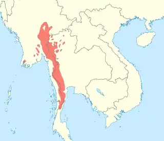 | Region | Kayin State, Myanmar Thailand Andaman and Nicobar Islands, India Malaysia |