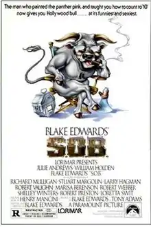 S.O.B. is a 1981 American satirical black comedy film written and directed by Blake Edwards. It stars Julie Andrews, Richard Mulligan, Robert Preston, Larry Hagman, Robert Vaughn, Robert Webber, Loretta Swit, Shelley Winters and William Holden in his final film role.[3][4][5][6] The film was produced by Lorimar and was released by Paramount Pictures on July 1, 1981.