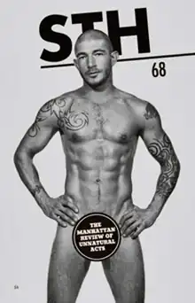 The magazine also published pornographic images, both reader-contributed and sourced from studios such as Old Reliable and the Athletic Model Guild.[15] Issues published under McDonald's editorship also contained his commentary on sex, culture, and politics, particularly what he perceived as the hypocrisies of individuals and celebrities who were not fully accepting of their own desires.[16]