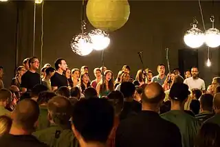 SACRA/PROFANA is a California-based chamber choir founded in 2009.[1] They are noted for their eclectic[2] and unorthodox[3][4] approach to choral repertoire, and for appearing as the onstage choir for fifty consecutive performances of The Hunchback of Notre Dame during its American premiere at the La Jolla Playhouse in 2014.[5]