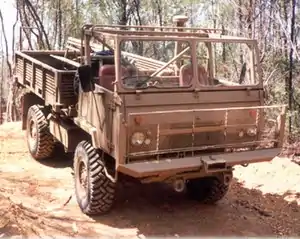 The SAMIL 20 is a light utility 4x4 military truck designed and built in South Africa for the South African Military forces. The chassis provide the basis for a wide range of cross-country vehicles. It has a forward control cab with a canvas roof and removable side windows. The cargo area is made of pressed steel with low steel sides and may be covered with a canvas top carried on a removable steel frame. A removable bank of back-to-back outward facing seats is fitted on the cargo centre-line accommodating ten seated troops. These seats may be removed and carried on the sides of the cargo area when the vehicle is used for general cargo purposes. The cargo area has four container locking ports to permit 20' containers to be carried. The spare wheel is mounted between the cab and cargo area and a manual light crane is fitted to allow wheel changes by a single operator.[6]