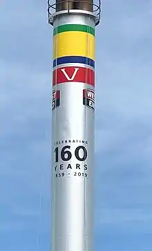 The tradition of painting the colours of the premier and runners-up was maintained at the Hindley Street premises until its closure in 1980,[20] before transferring to the Thebarton site,[23][5] which was rebadged "West End".[6] It continued there until the last finals before the closure of the brewery in 2020, with the Woodville West Torrens Eagles colours aloft.[24] The tradition of painting a chimney in the two teams' colours would continue at the Hoffmann Kiln at the Brickworks Marketplace in nearby Torrensville from 2021,[25] with the cost of the painting continuing to be borne by Lion.[26]